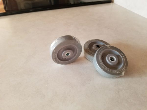 3 colson rubber wheels.